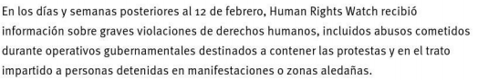 In the days and weeks following February 12, Human Rights Watch received reports of serious human rights violations, including abuses committed during government operations aimed at containing the protests. and in the treatment of persons detained at demonstrations or in surrounding areas
